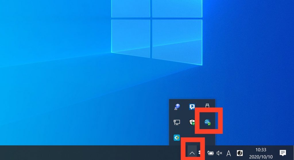 1.右下のタスクバーの矢印をクリックし、ウイルスバスターのアプリケーションをクリックします。