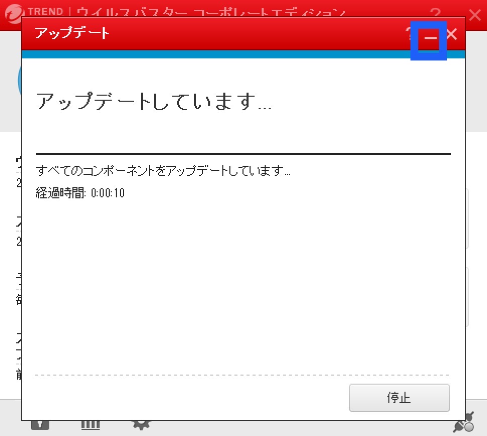 (時間が掛かりそうな場合は【 _ 】をクリックすると画面が消え、バックグラウンドで実行を行います)
