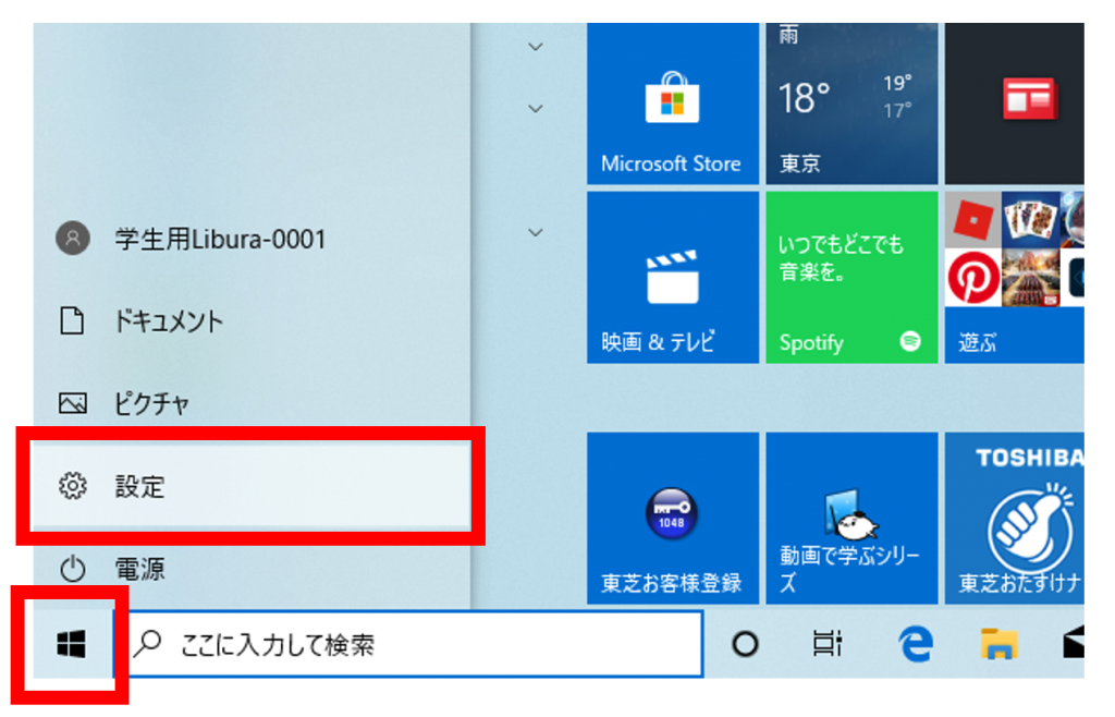 1 購入した外付けSSDなどをPCに挿し、「Windowsログマーク」「設定」をクリックして下さい。