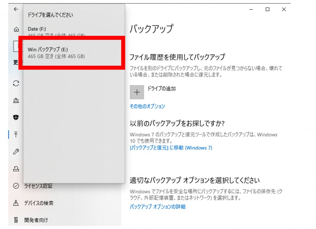 5 保存先を指定します。ここでは外付けSSDの「Winバックアップ」という場所に保存をします。
