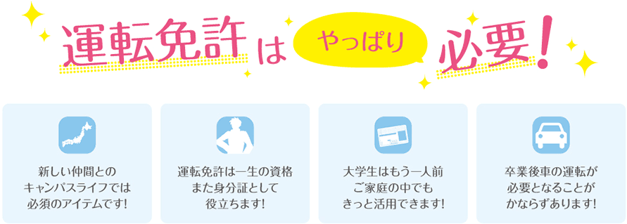 運転免許は大学売店の受付が「安心」で「お得」です。